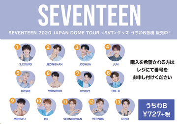 Hmv Books Hakata Seventeen Seventeen Japan Dome Tour Svt 第1弾 一部グッズ 好評販売中 うちわソロ ワッペン バッジセットにペンライトver 2など Seventeen Photo Space 開催記念グッズ購入特典の配布は対象外となります